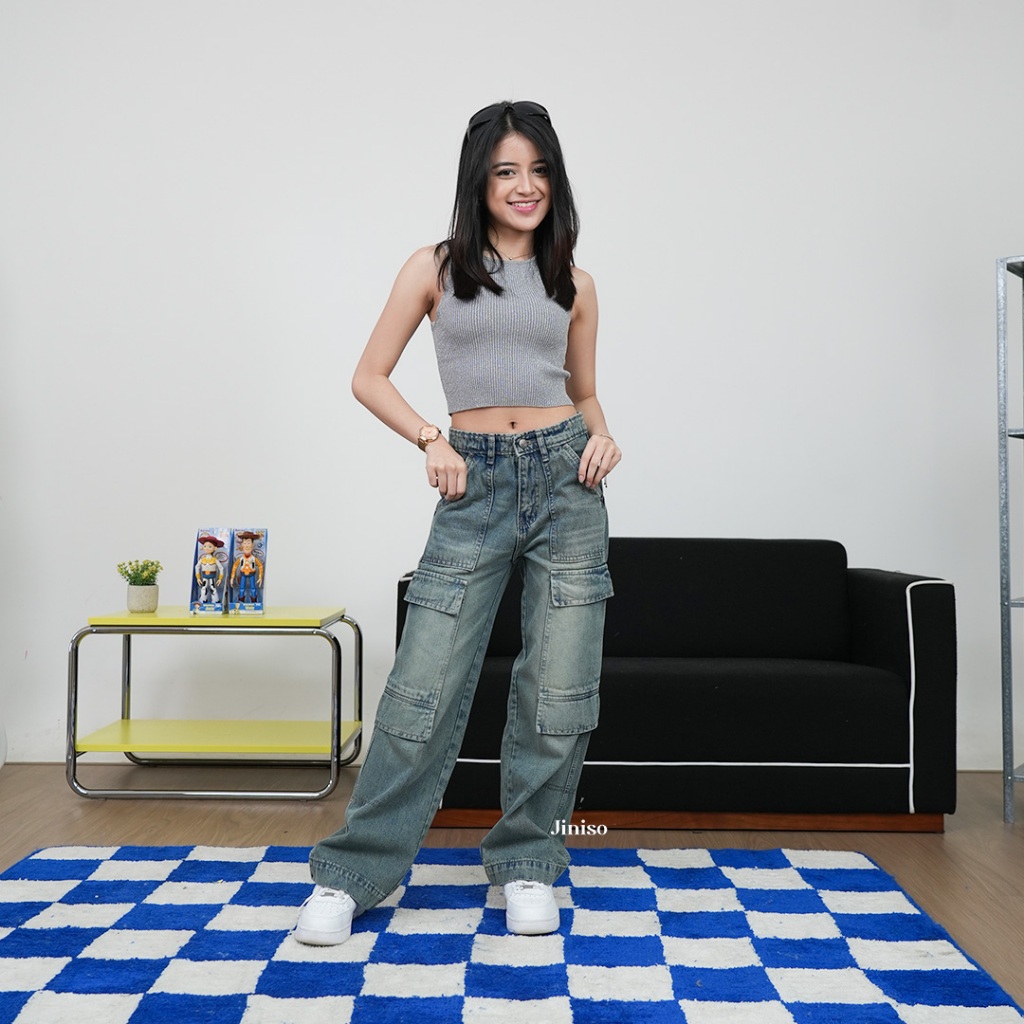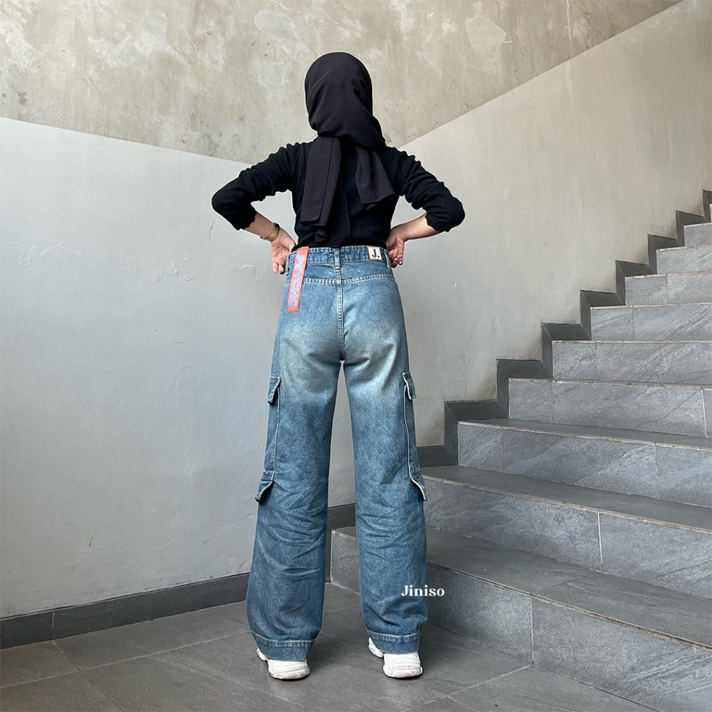 Jiniso - Highwaist Cargo Loose Jeans 555 Psycho