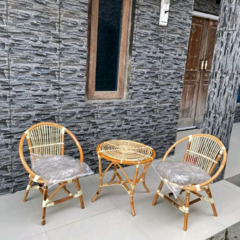 Kursi Momon Rotan Free Bantal Pernis Mengkilap Kursi Teras Bangku Tempat Duduk Minimalis