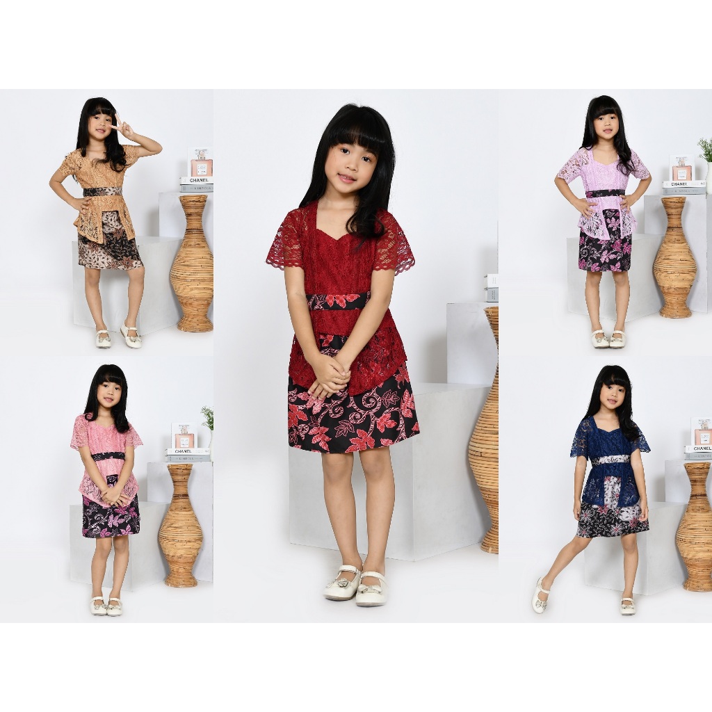 Setelan Kebaya Anak Batik Kutu Baru CHACA KID / Kebaya Brukat Modern Pesta Kondangan