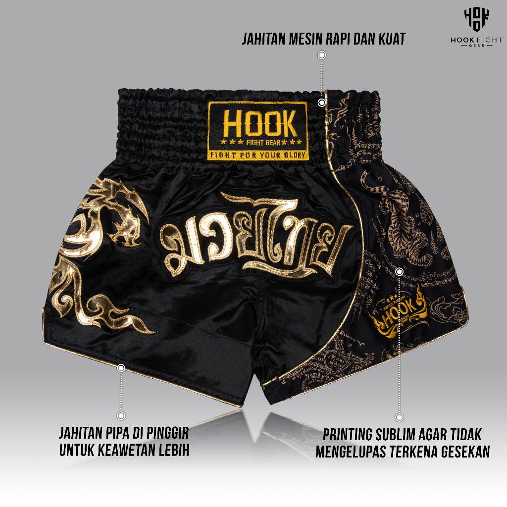 CELANA MUAY THAI HANZO FIGHT GEAR, CELANA MUAYTHAI PREMIUM, MUAY THAI SHORTS ORIGINAL HANZO