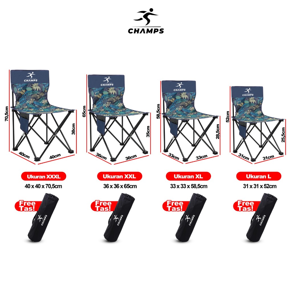 Kursi Lipat Portable Camping Merek Champs Flora Ringan Outdoor Gunung Piknik Ch 70