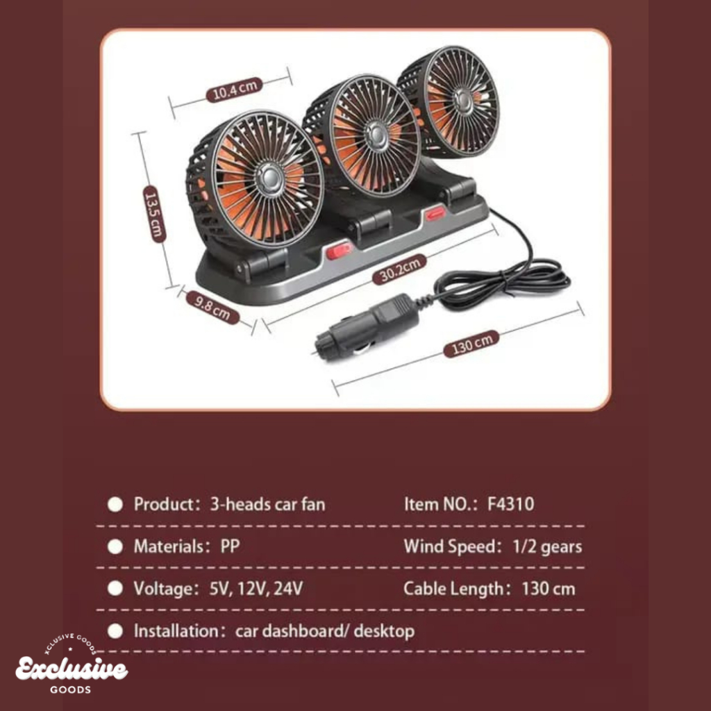 Kipas Angin Mobil Xgoods Tiga Kepala 12 24v Kipas Pendingin Truck Usb Dashboard Rotasi 360 Fan Car