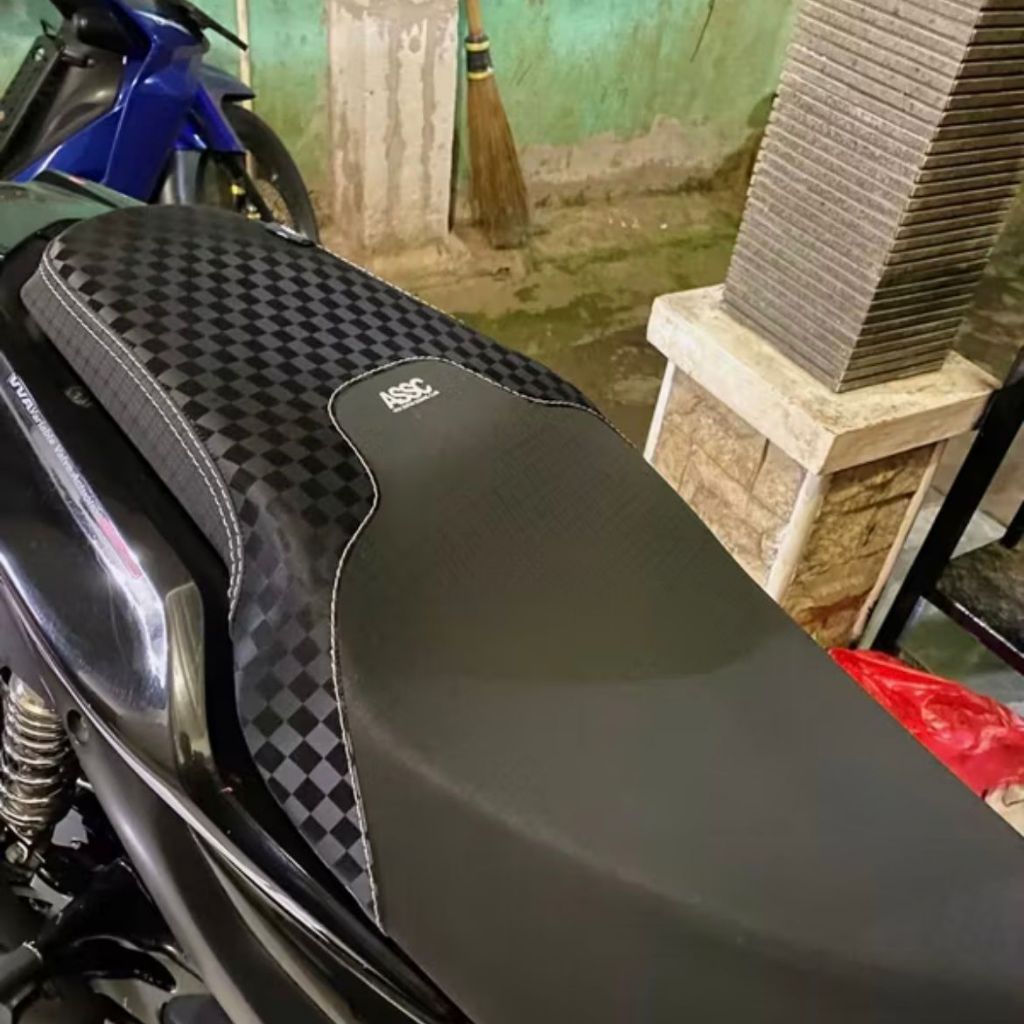 Kulit Jok Motor Arvicreations ASSC Carbon x Motif Kotak V2 Mode 3 Sudah Dijahit Tinggal Pasang / Kulit Jok Motor Matic L