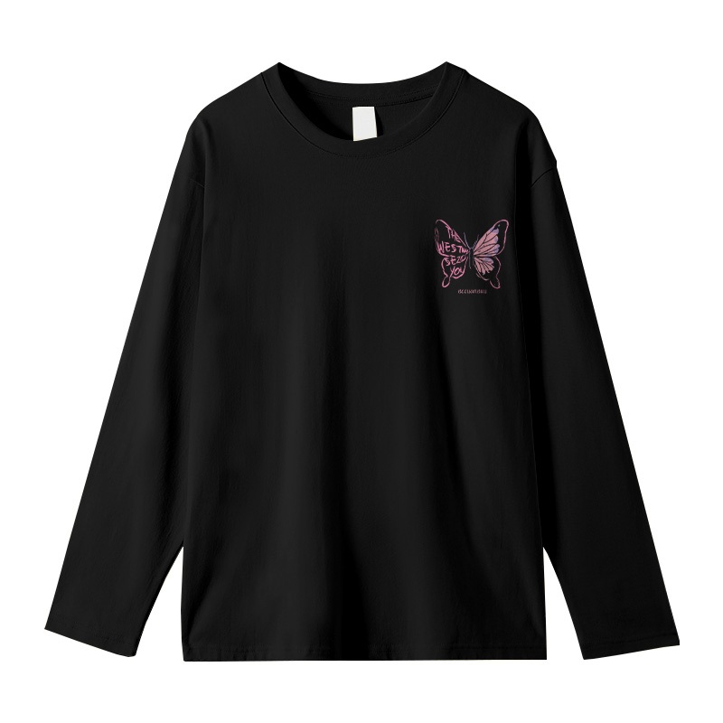 Kaos Oversize Lengan Panjang Wanita Korean Style Cute Pink Butterfly/ Baju Kaos Lengan Panjang Wanita Terbaru Kekinian/