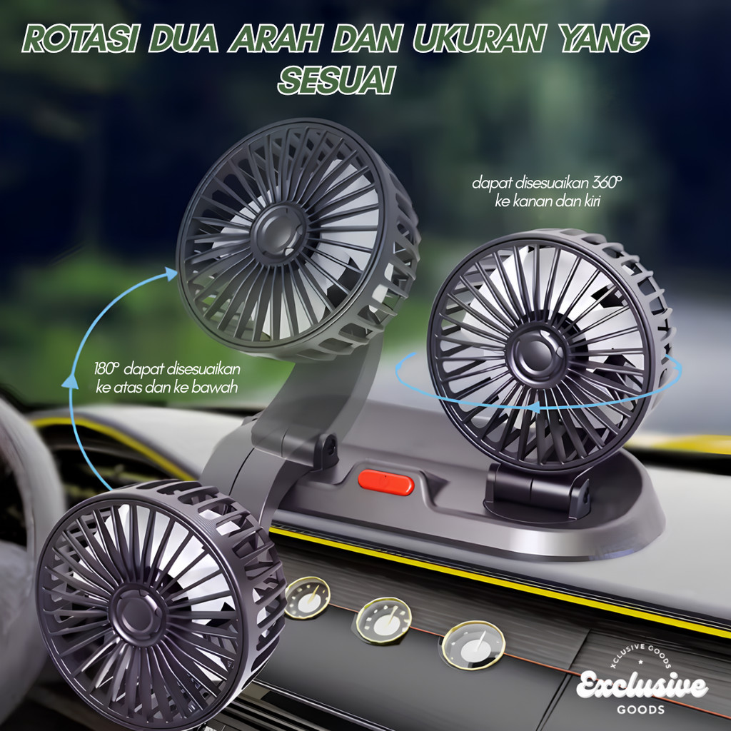 Kipas Angin Mobil Xgoods Double Fan Kipas Ganda Aksesoris Mobil 12v 24v Car Fan Kipas Dasbor