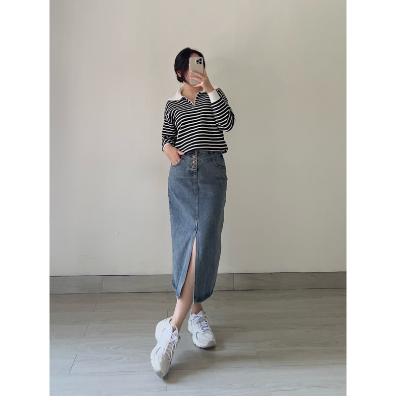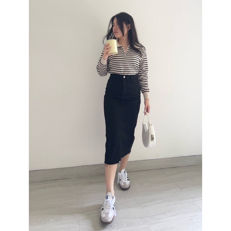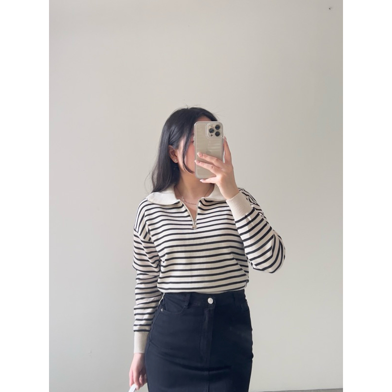 Klavee - Mave Knit Sweater Top / Atasan Rajut Wanita / Long Sleeve Lengan Panjang Stripe Loose Korean Style