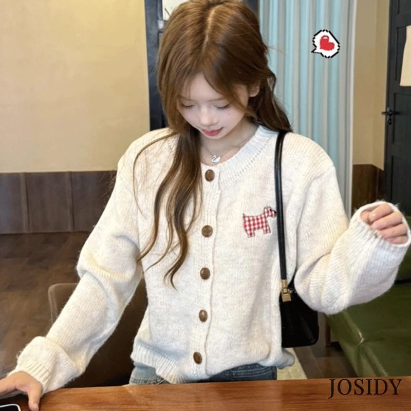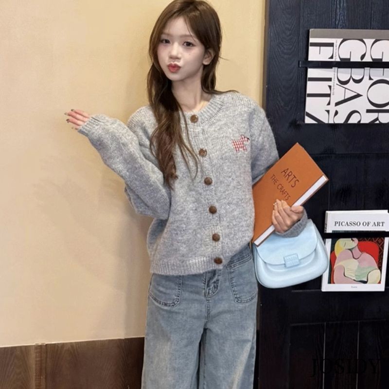 Korea Sweater Rajutan Kasual Wanita Bordir Gaya Manis Warna Permen Jd