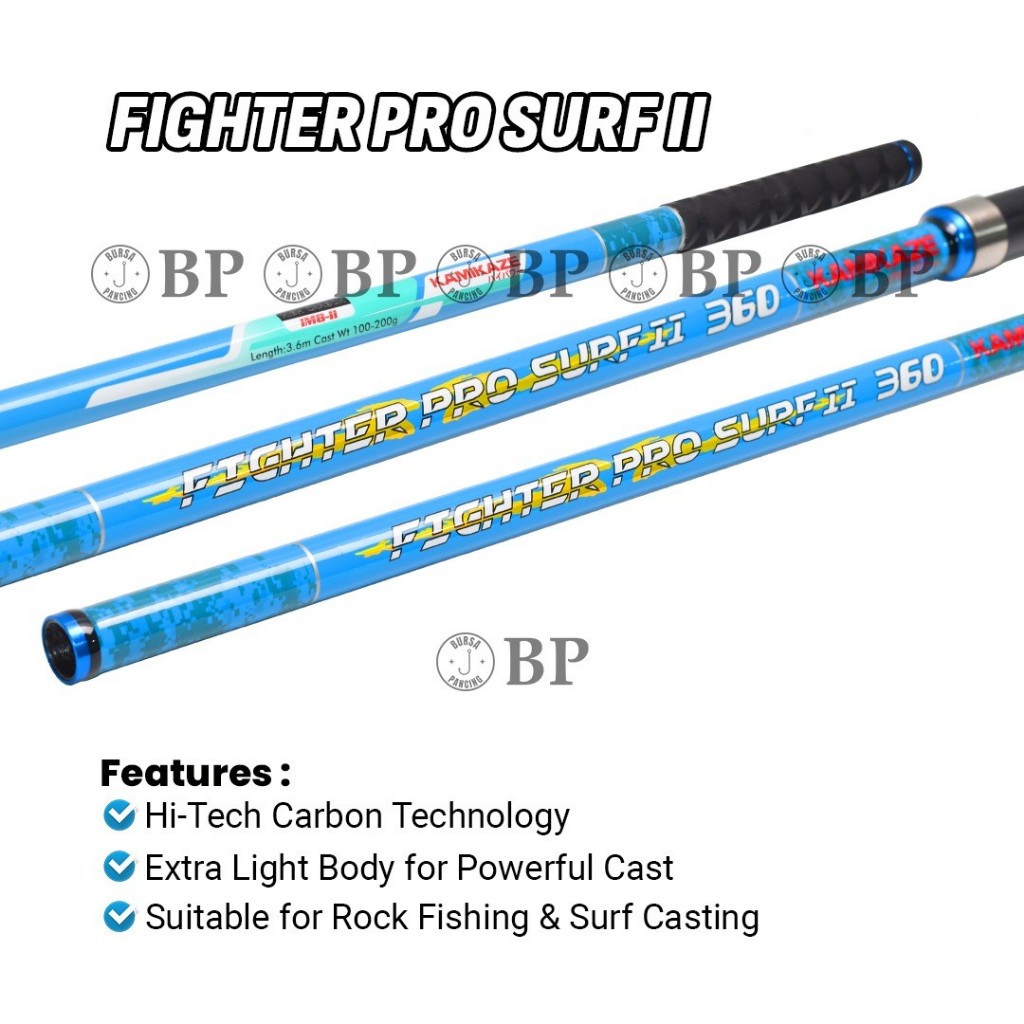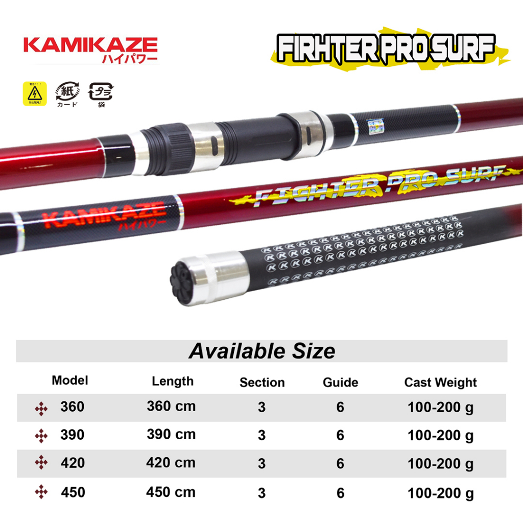 KAMIKAZE Joran Pancing FIGHTER PRO SURF I dan II Spinning Carbon Sambung 3 360CM - 450CM Untuk Rock Fishing Surf Casting