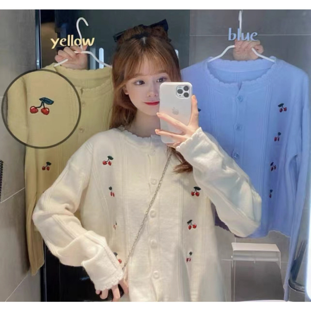 Kano Cardigan Knit Cute Soft Cardigan Rajut Motif Cherry Outer Knit Cardigan Korea Premium