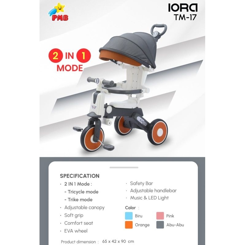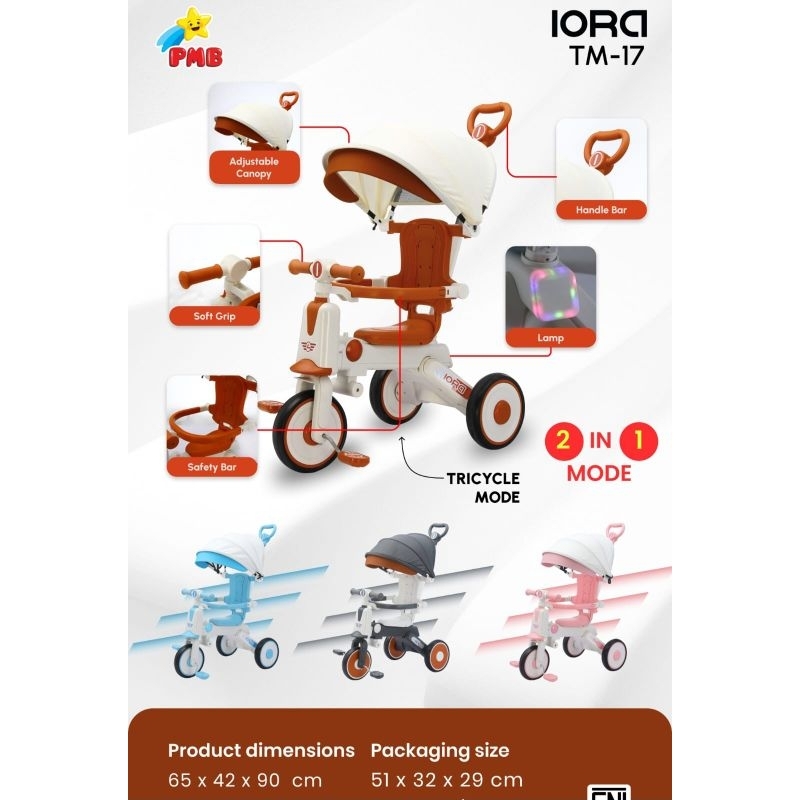 SEPEDA RODA TIGA ANAK TRICYCLE IORA TM16 BEBEK / TM17 2in1 MULTIFUNGSI / F-101
