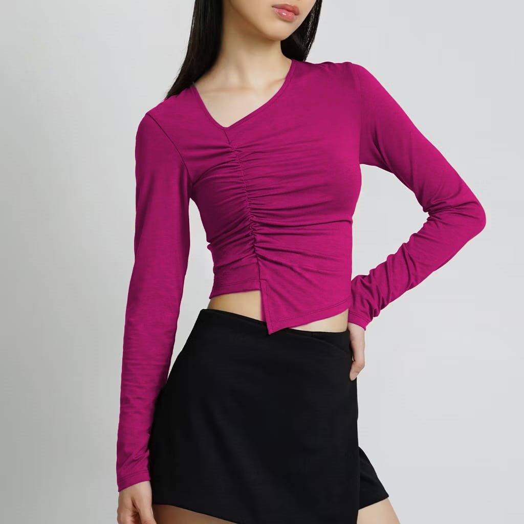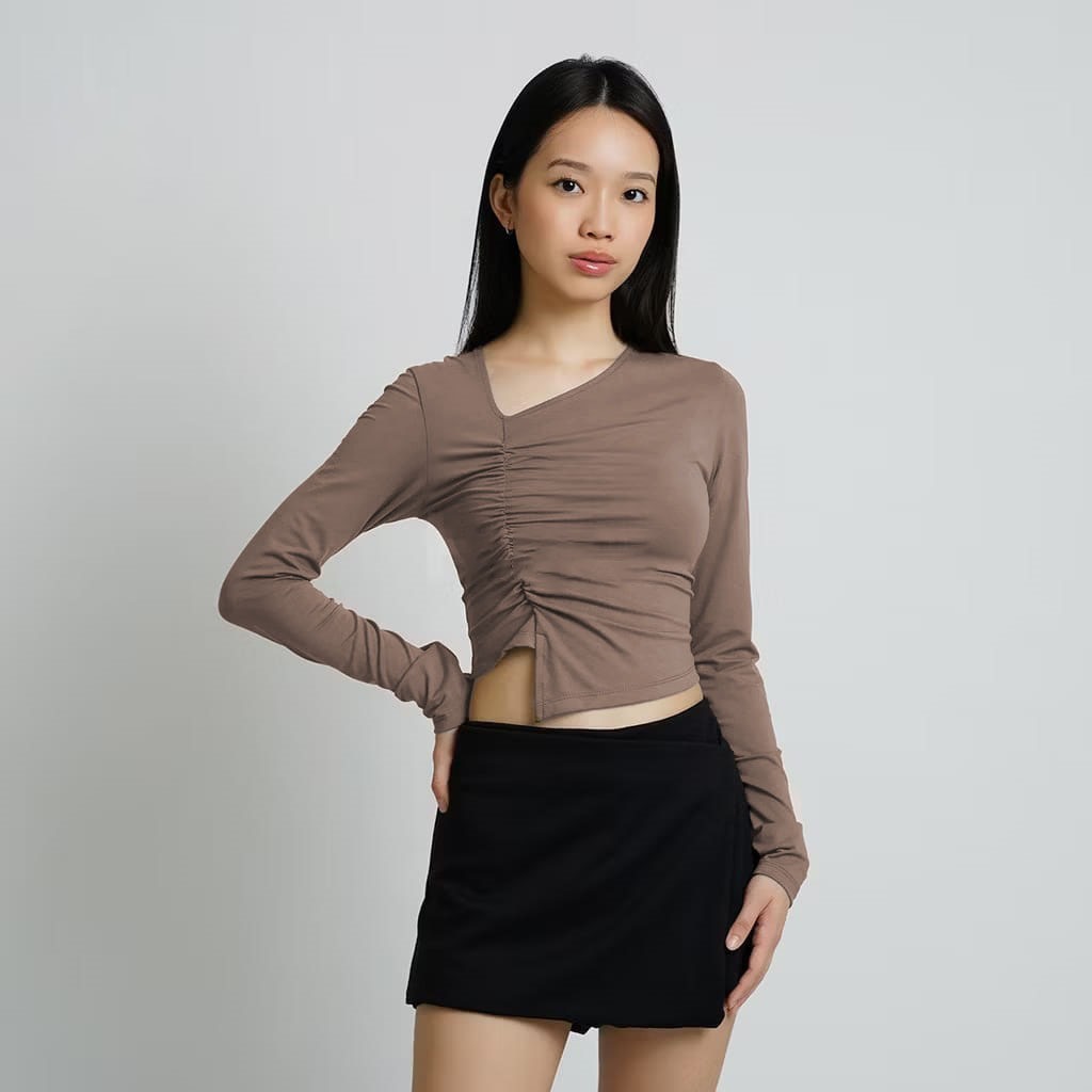 Crop Top Kerut Asymmetric Korean Style Atasan Wanita