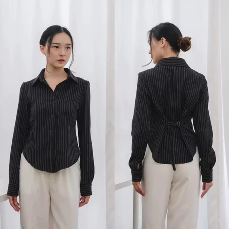 Kemeja Wanita Fitted Luna Stripe Atasan Salur Korean Style Terbaru