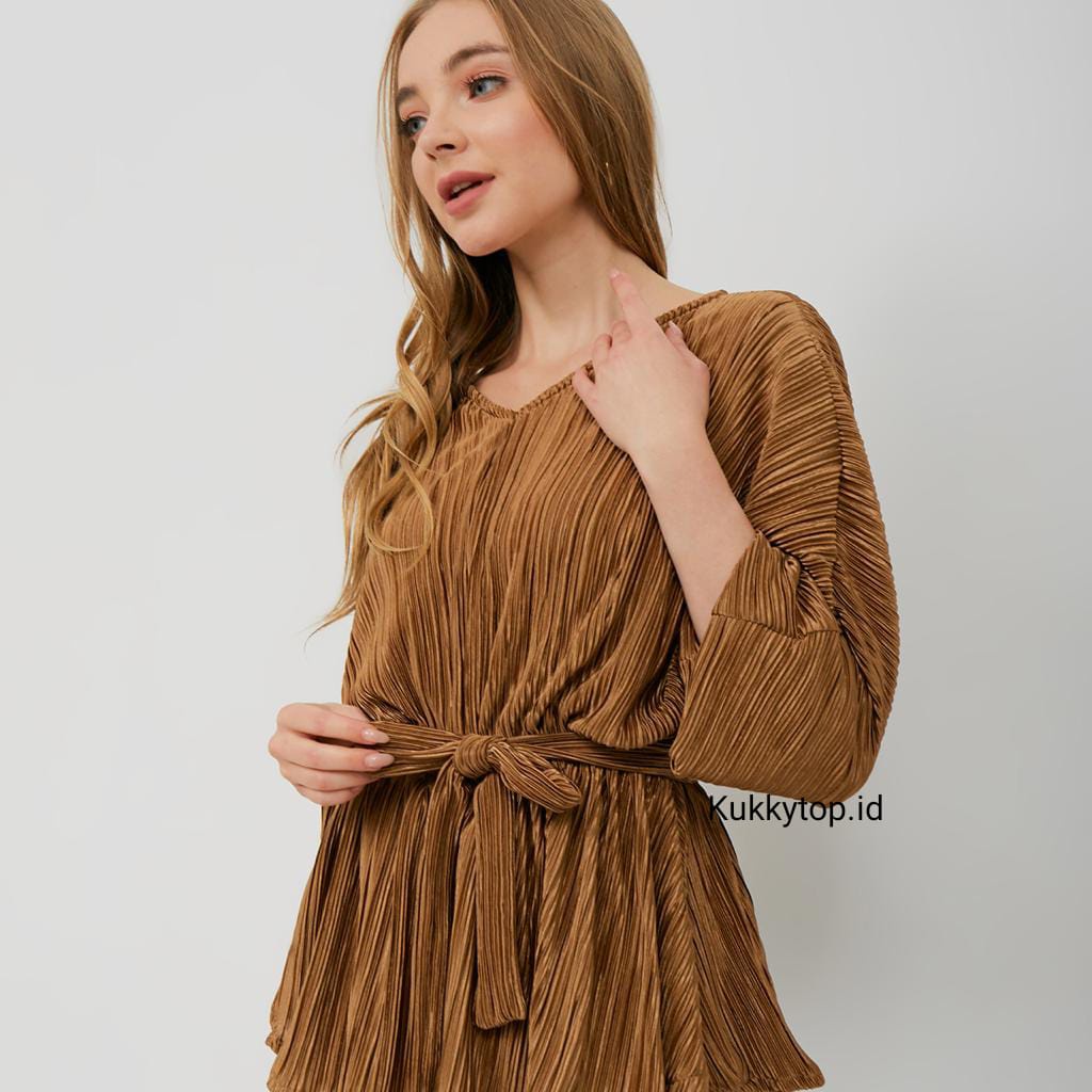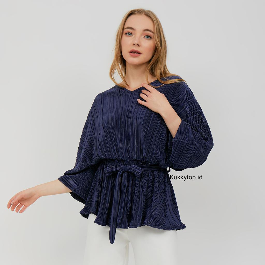 Kukky Top Atasan Wanita Terbaru Blouse Tangan Panjang Plisket Korean Style 12035