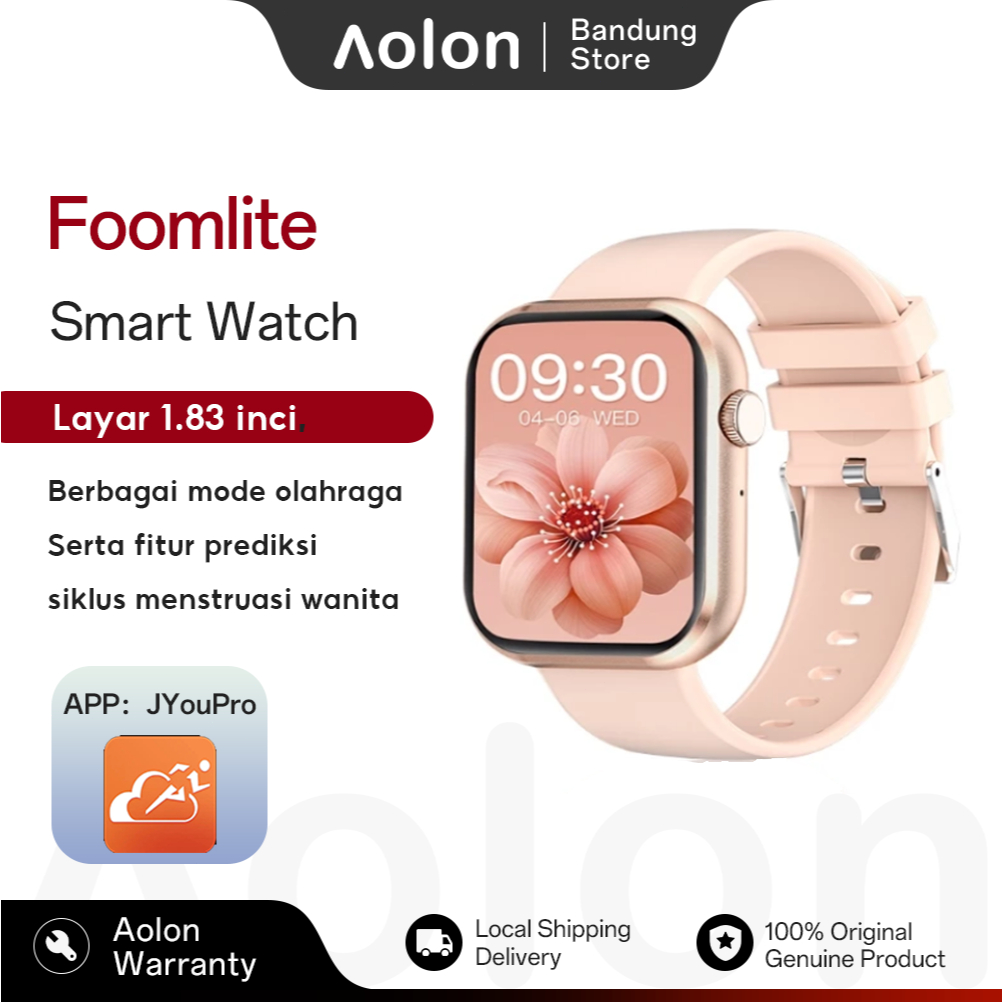Aolon Foom lite 1.83 Inches Smart Watch Jam Bluetooth Call Watch For Woman Man Smartwatch Original IP68 Waterproof Sport Watch Count Steps Distance Calories BT5.0 Heart Rate Measur Wanita Pria