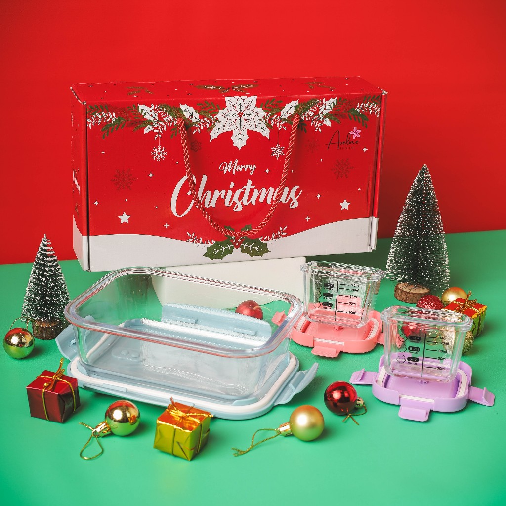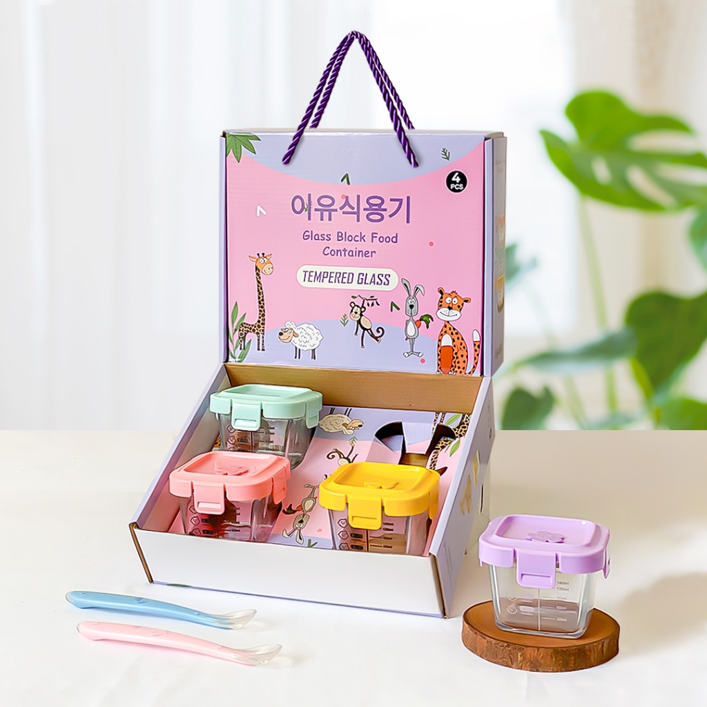 Feeding Set Aveline Set Tempat Mpasi Kaca Hampers Baby Gift Wadah Penyimpanan Mpasi Glass Baby Food Container Bpa Free