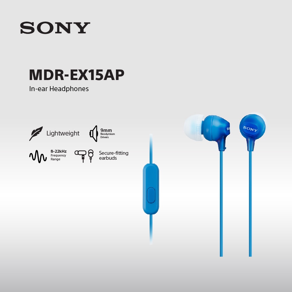 Earphone Sony MDR-EX15AP Handsfree In-ear With Microphone - Blue SONY Earphone Headset Headphone Original
