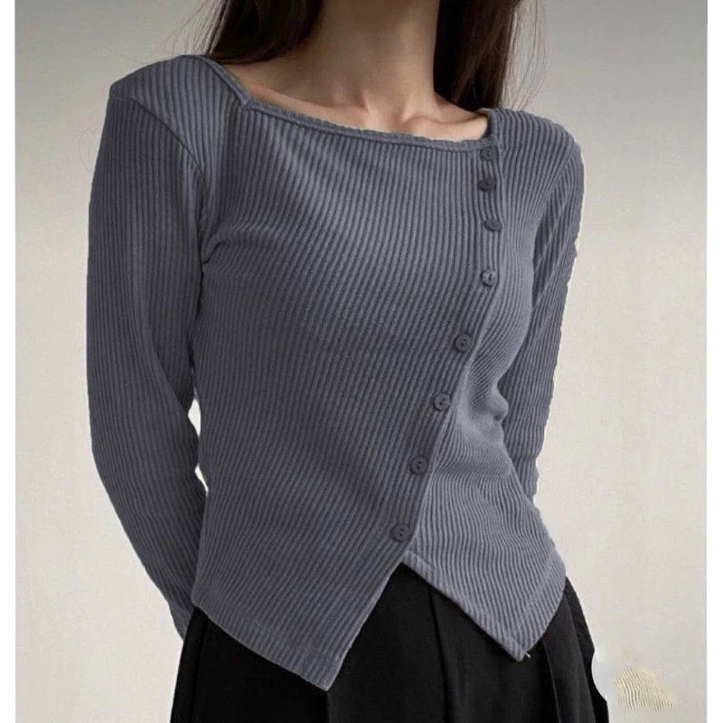 March Blouse Korea - Atasan Wanita Kancing - Cricia Blouse Knit Rib Korean Style