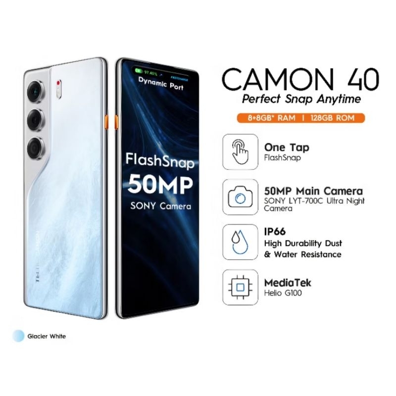 TECNO CAMON 40 NFC RAM 8/128 GB l TECNO CAMON40 NFC RAM 8/256GB Garansi Resmi TECNO INDONESIA