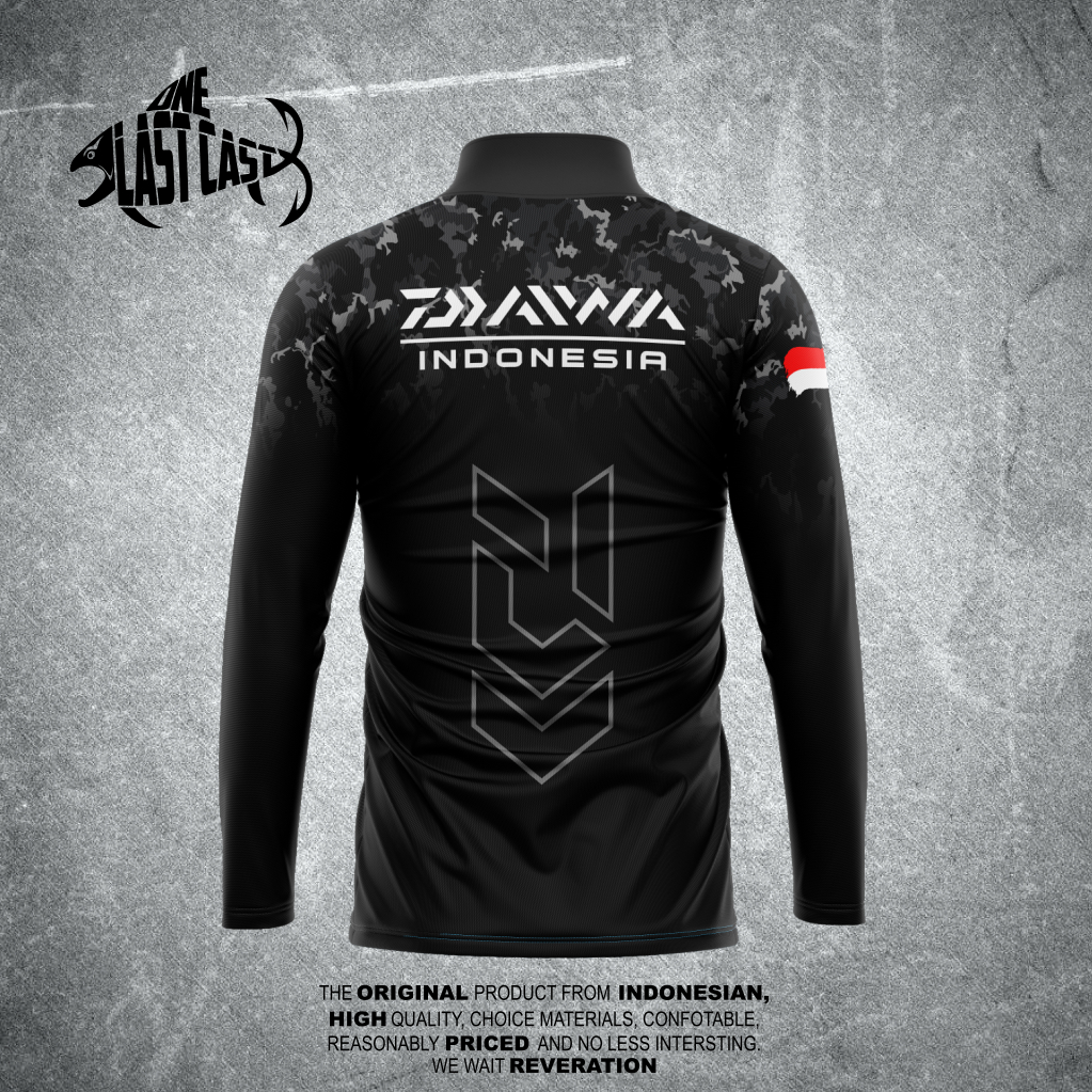 Onelastcast Baju Mancing / Jersey Mancing Model Kerah Berdiri Zipper / Jersey DAIWA BLACK FullPrint