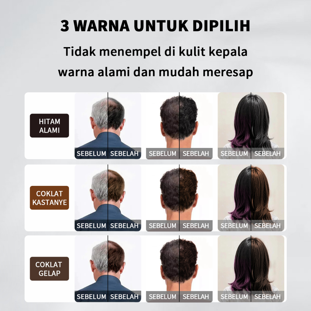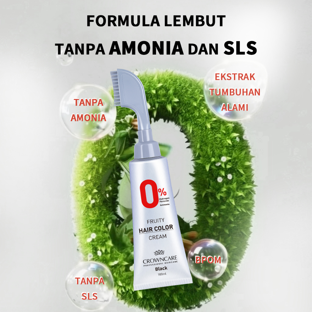 Crowncare Pewarna Rambut Herbal Alami BPOM, Hair Coloring Cream dengan Sisir, Bebas Amonia & SLS, Tutupi Uban Dengan Cep