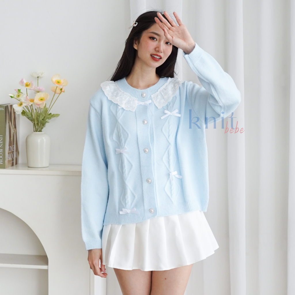 Knitbebe - Jean Atasan Cardigan Rajut Ribbon Knit Top Baju Pita Coquette