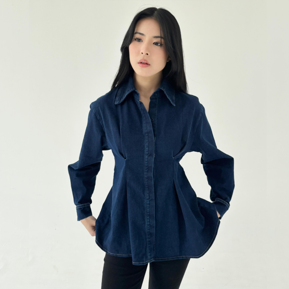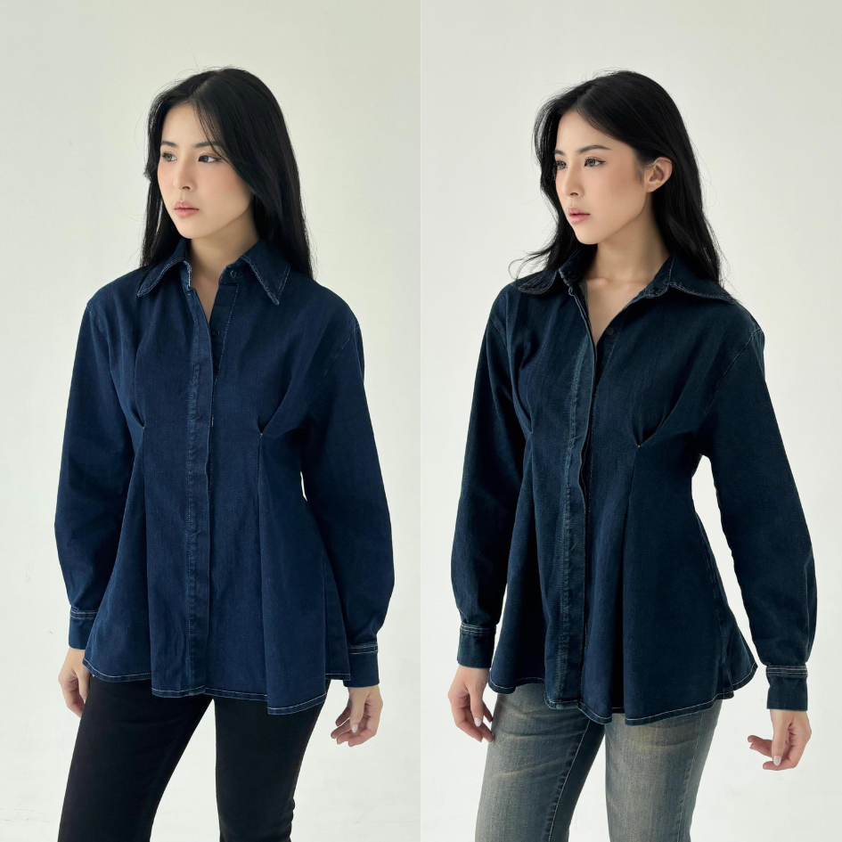 Ladouce - Arrinka Denim Top Atasan Jeans Wanita Hijab Friendly