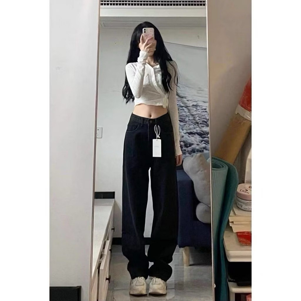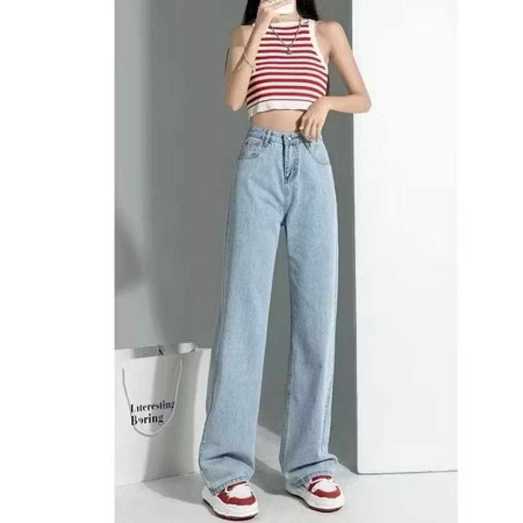 Lulu Jeans Celana Jeans High Waist Wanita Korean Style Jeans Baggy Pants Serbaguna Kasual Biru Retro 27-38