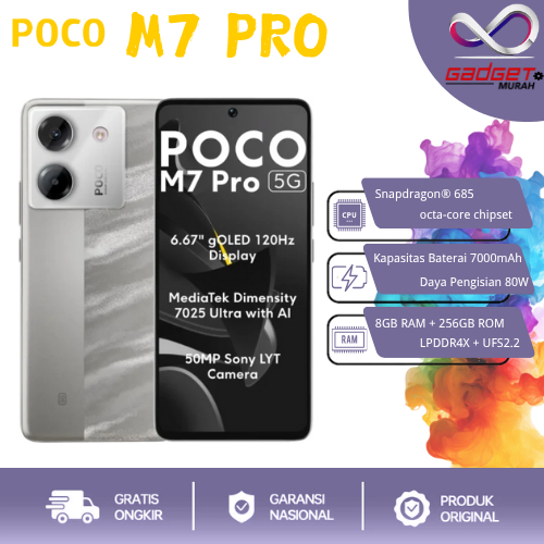 Poco M7 5G 8+256GB Smartphone 6.5" FHD+ Display, Snapdragon 695, 50MP Camera, 5000mAh Battery