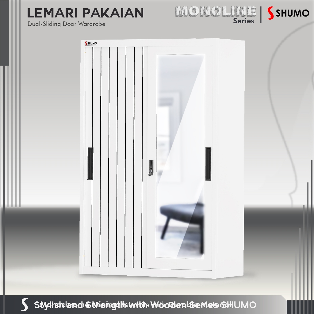 Lemari Pakaian Besi Dua Pintu Sliding Jumbo Kaca Merek Citra Furniture Shumo Ctr1