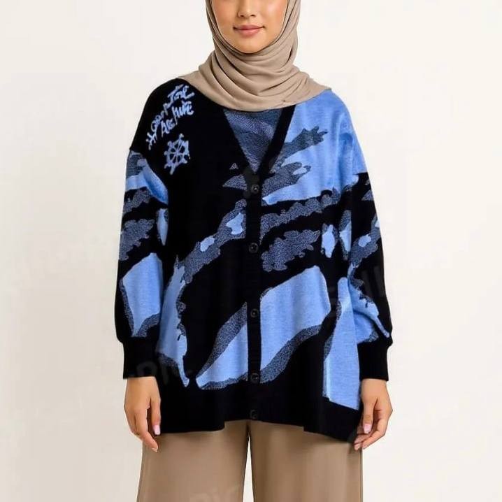 Nara Grosir - Jangkar Outer | Cardigan Rajut Kancing Motif Jangkar Dan Arah Angin Atasan Lengan Panjang