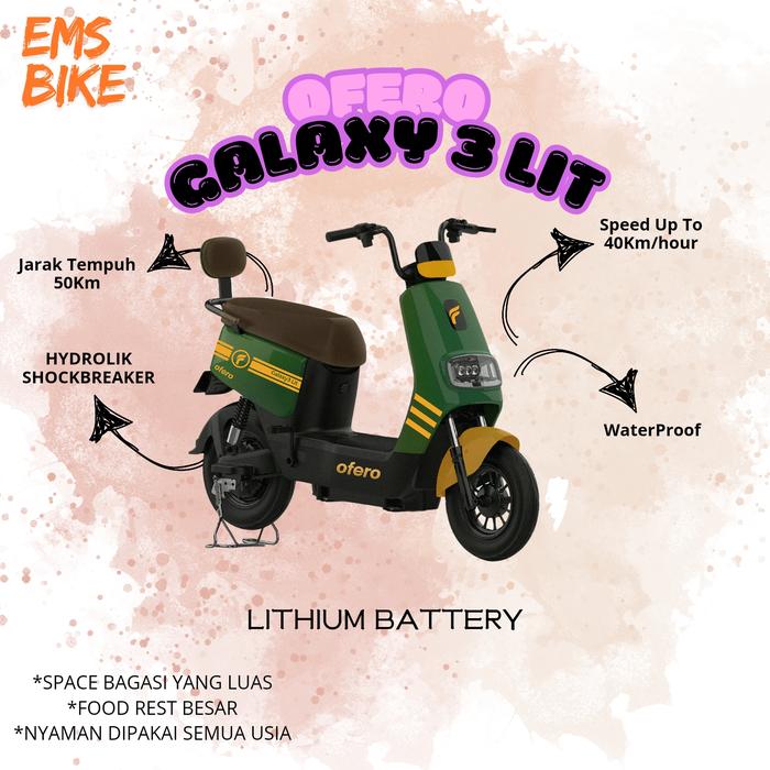 OFERO GALAXY 3 LITHIUM 500 WATT 48V12AH WATERPROOF IPX7 sepeda listrik Outdoor - BLACK