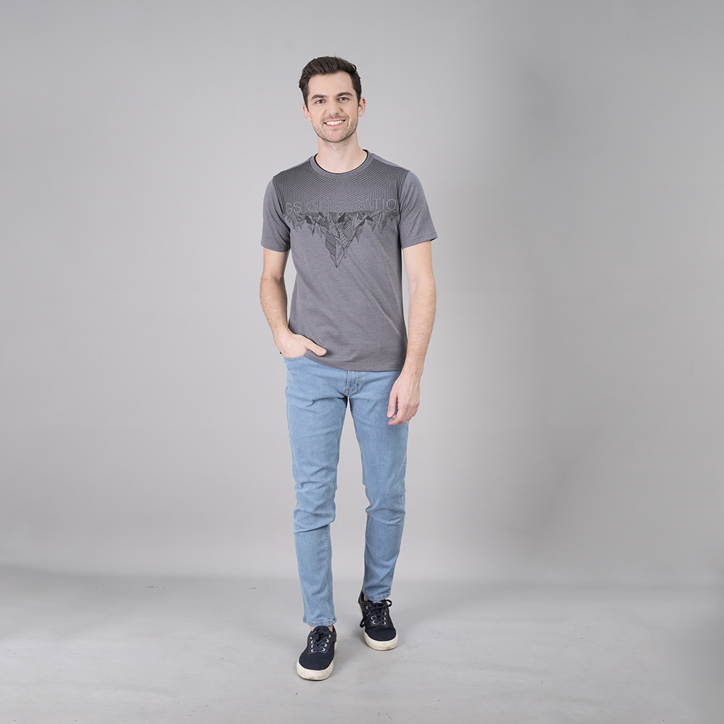 LGS - Kaos Casual Pria - Lengan Pendek - Motif Sablon - Warna Abu-Abu Muda - JTS.322.S3148F.01.C