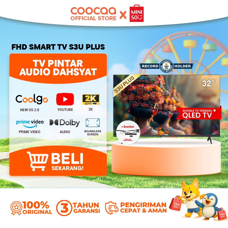 Tv Coocaa 32 Inch S3U Plus Smart 2K Led Coolita 3.0 Youtube Prime Video Dolby Audio + Bracket