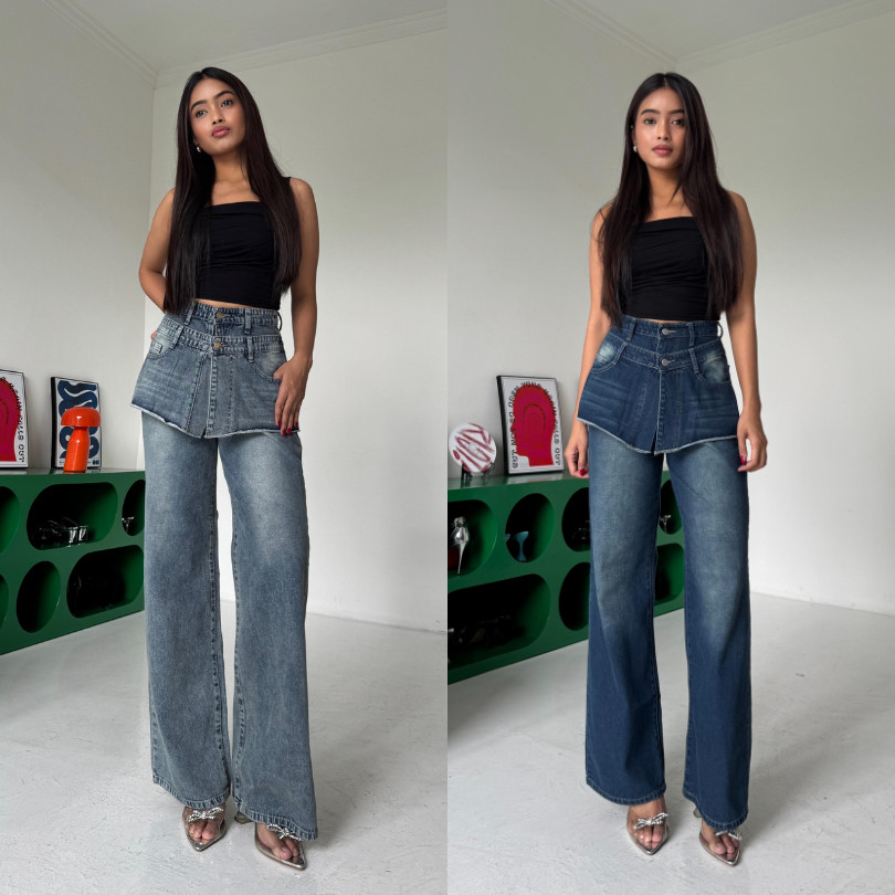 Ladouce - Jodie High Waist Baggy Jeans Celana Panjang Wanita Denim