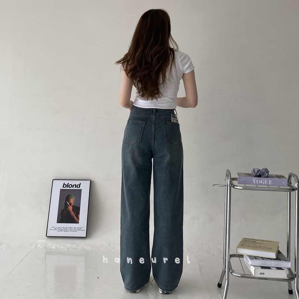 Latte Jeans In Dark Blue – Celana Baggy Jeans Wanita Korean Looks Xs - Xxl
