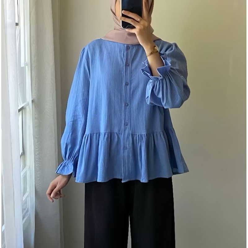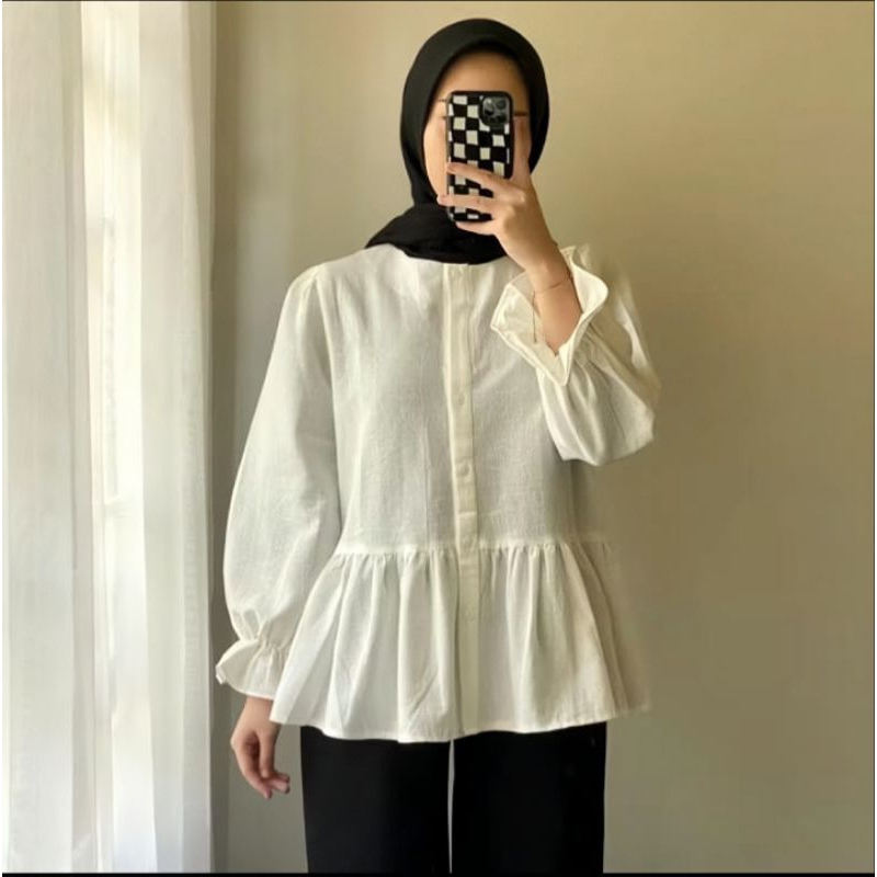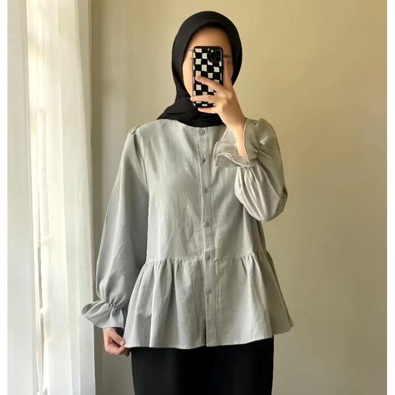 Lolly Ruffle Shirt - Kemeja Oversize Linen - Atasan Wanita