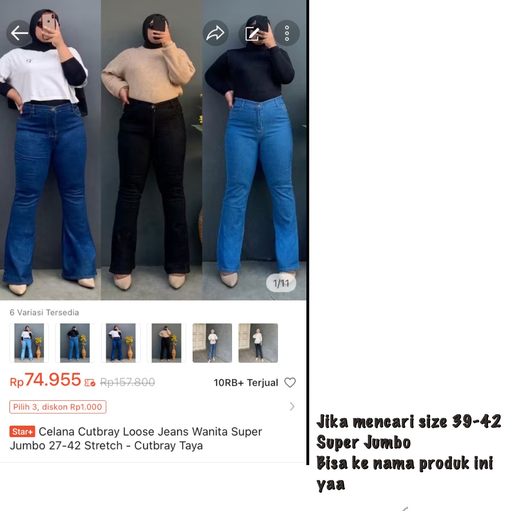 Loose Cutbray Stretch Highwaist Wanita 27-38 - Celana Jeans Cutbray Loose Snow - Cutbray Taya