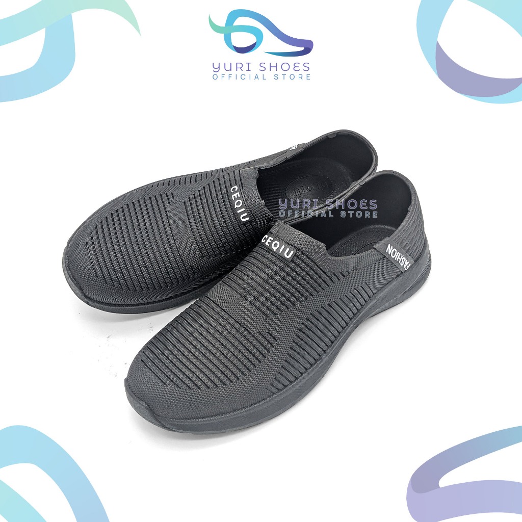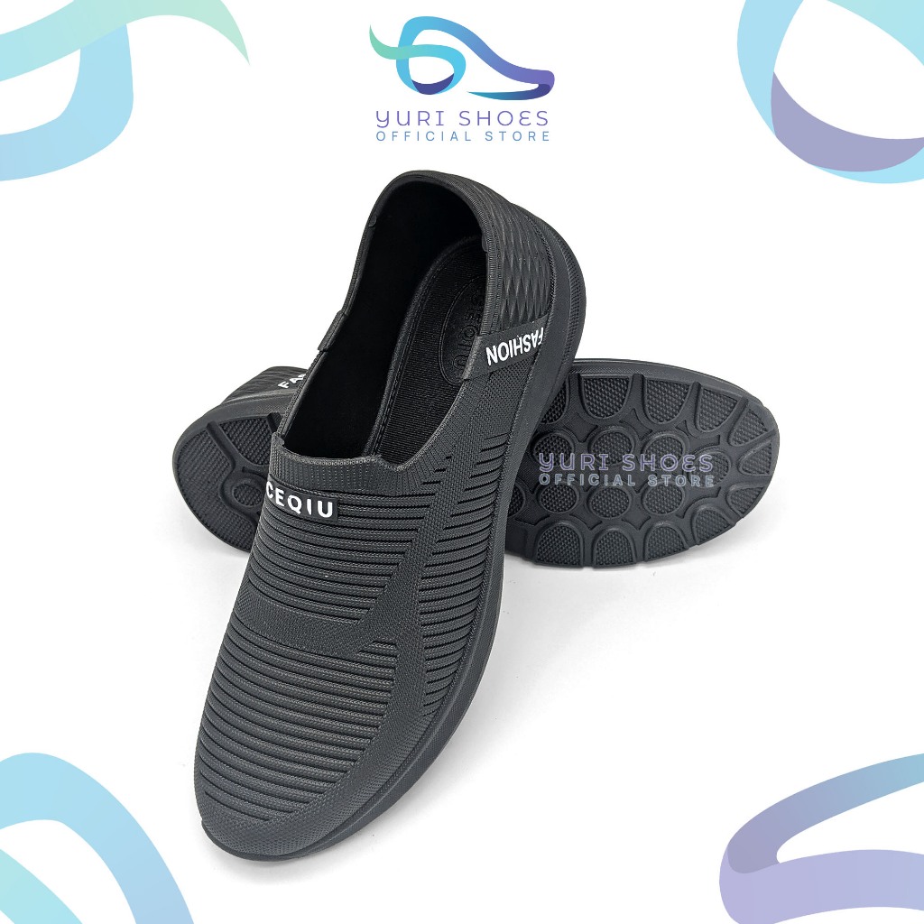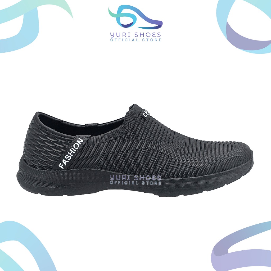 Yuri Shoes - Sepatu kerja Pria Warna Hitam Uk 38 - 43 / Sepatu Casual PCU Anti Slip / Sepatu Pria Slip On Bahan Karet Original Local Brand Quality [CQ 123 A-H]