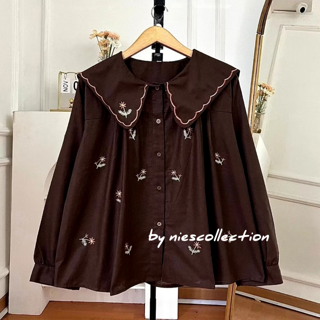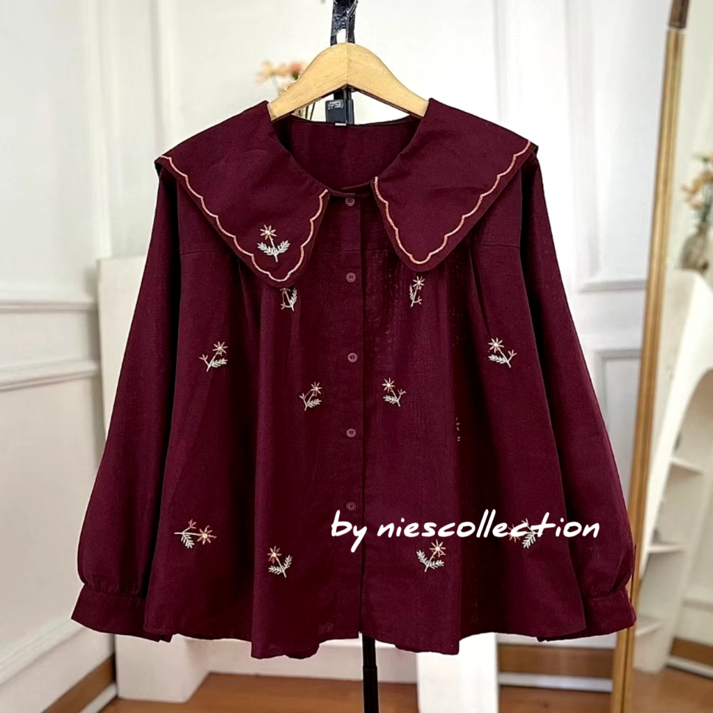 Marina Embroidery Kemeja Bordir - Ld 120 110 104 98 92 - Atasan Wanita Bahan Linen