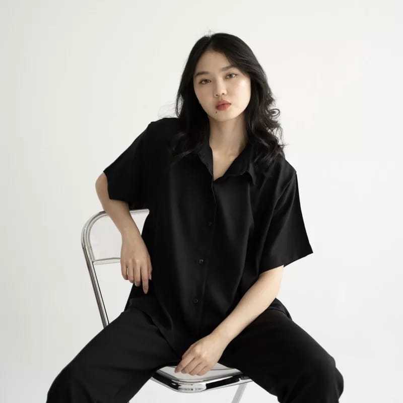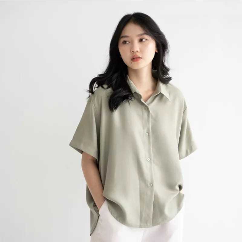 Mj_Style Park Shirt Top | Atasan Blouse Kemeja Lengan Pendek Wanita