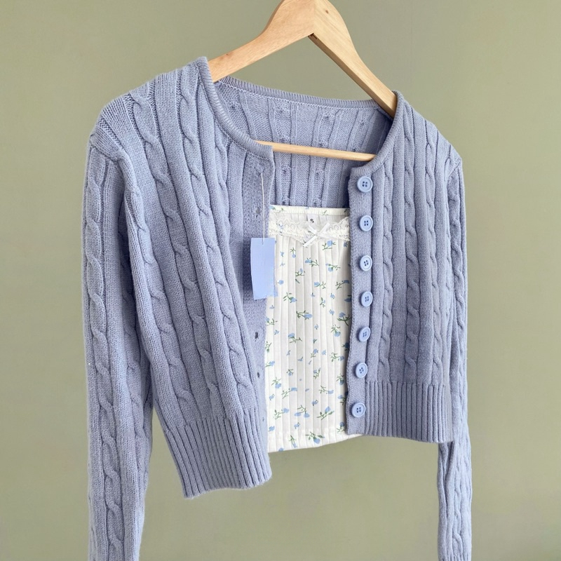Monica-Premium Cable Knit Cropped Cardigan Ready|Cardi Rajut Lengan Panjang Uaran Wanita Korea Polos