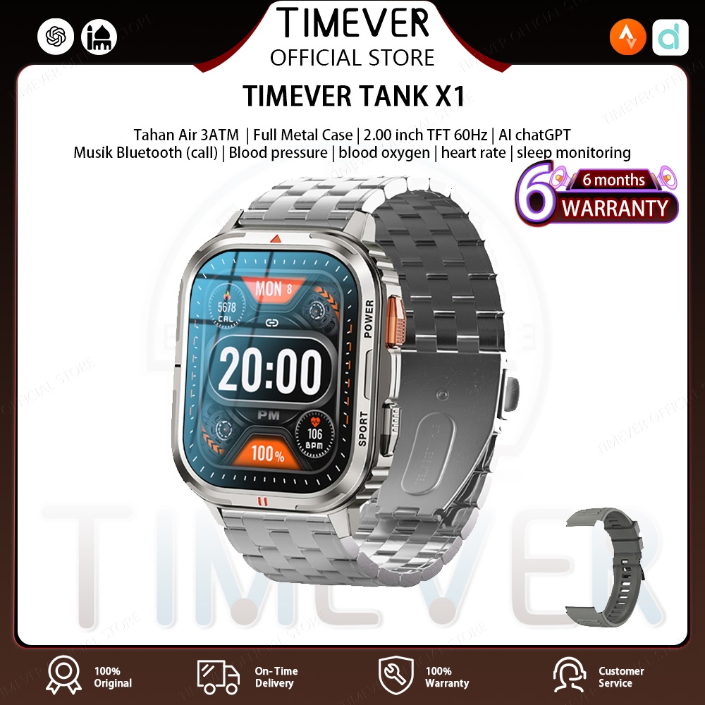 TIMEVER TANK X1 Al smartwatch bluetooth call 3ATM tahan air jam tangan wanita pna | jam tangan militer | fitness tracker Cerdas Berbasis Al timever