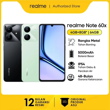 realme Note 60x HP Baterai Awet + 5000mAh + Kamera 32MP Jernih Original+Garansi 1Tahun