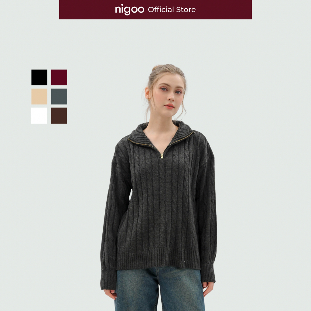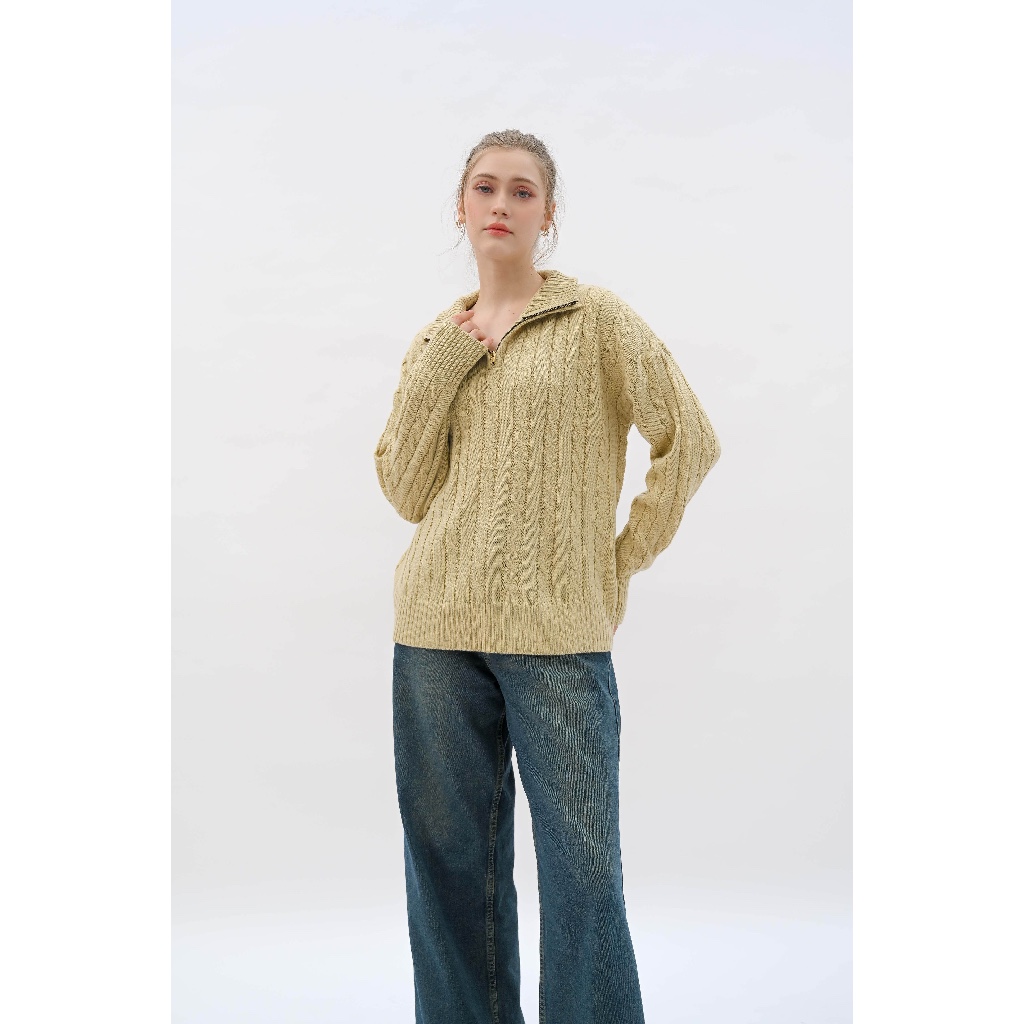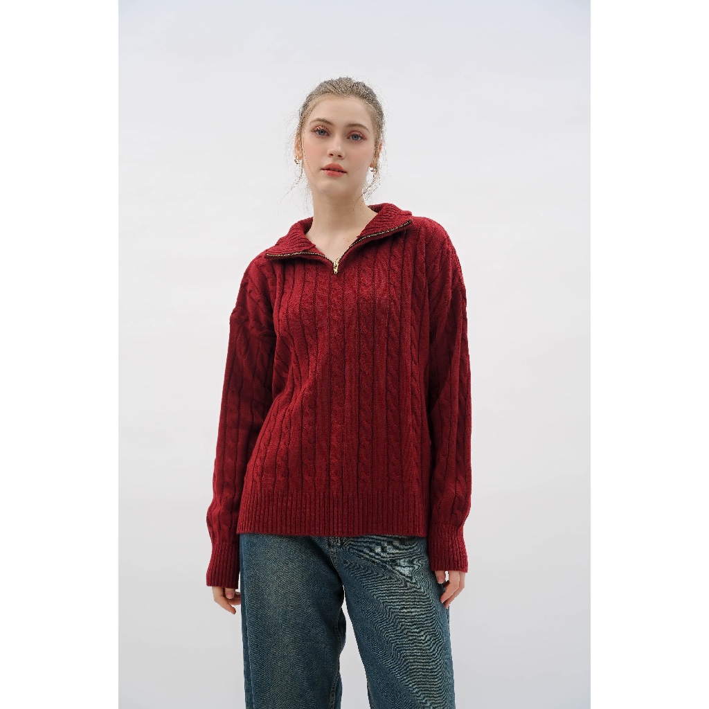 Nigoo Zoe Half Zip Knitwear Cable Sweater Wanita
