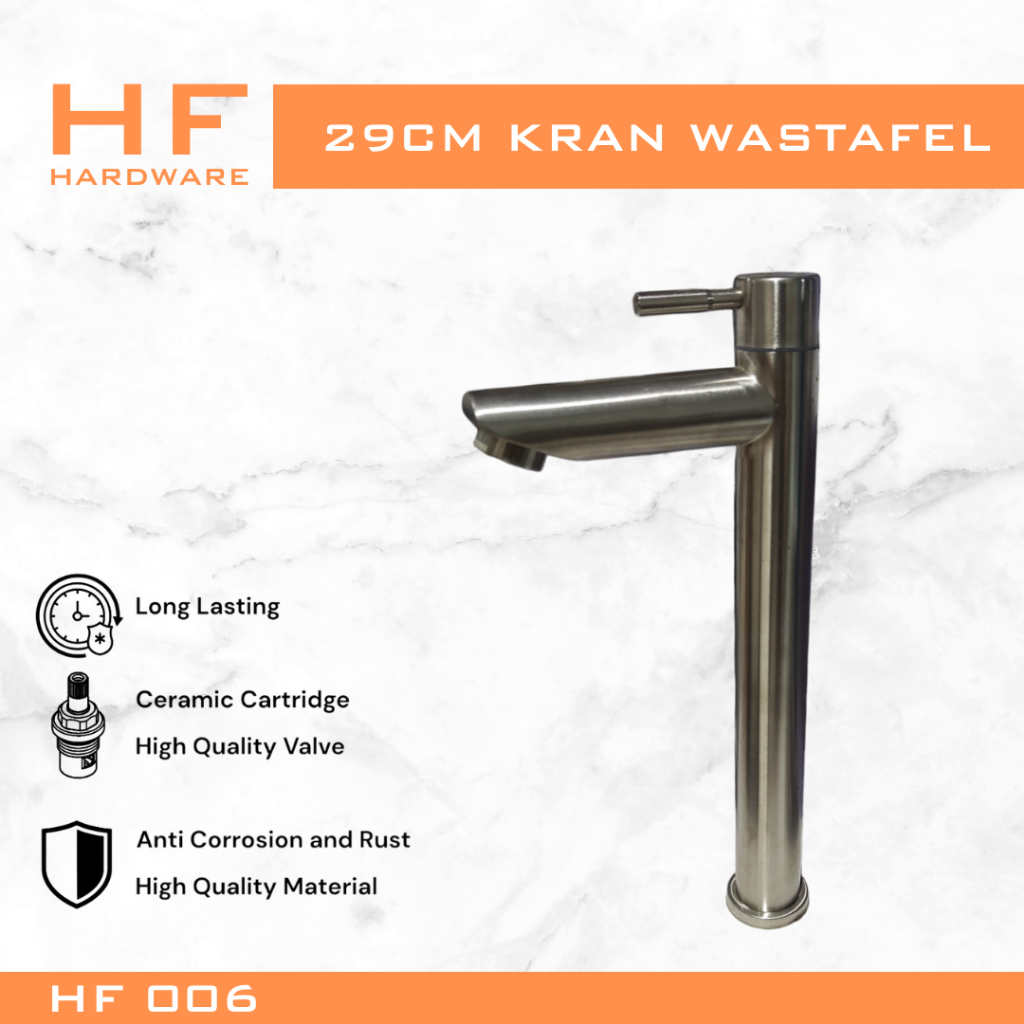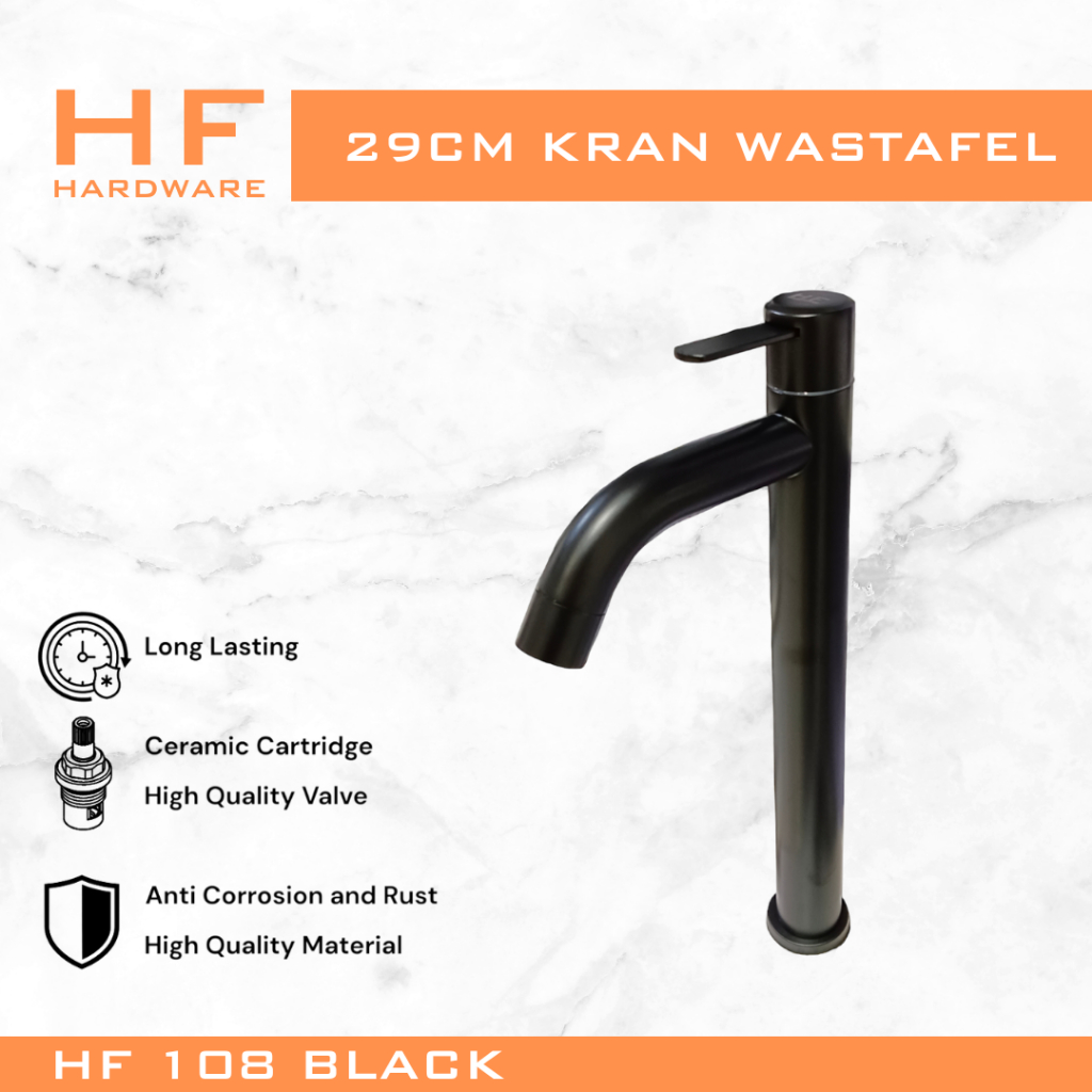 HF HARDWARE 29 cm Kran Dingin Saja Stainless Steel Wastafel Putar Kamar Mandi Warna Black White Satin 005 007