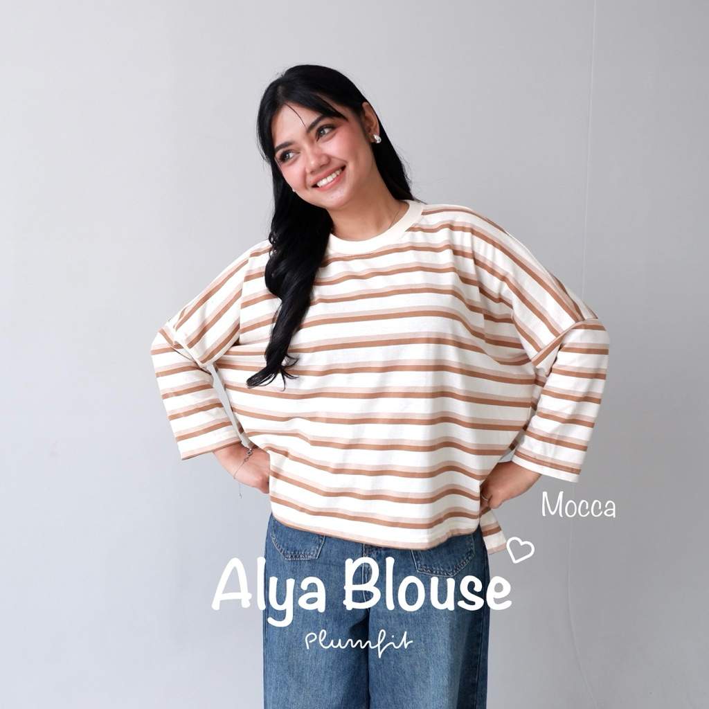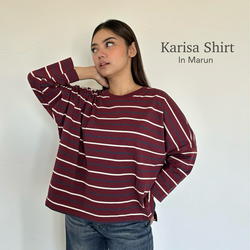 Plumfit Kaos Wanita Oversize Motif Garis Matterial Cotton Combed Karisa Shirt