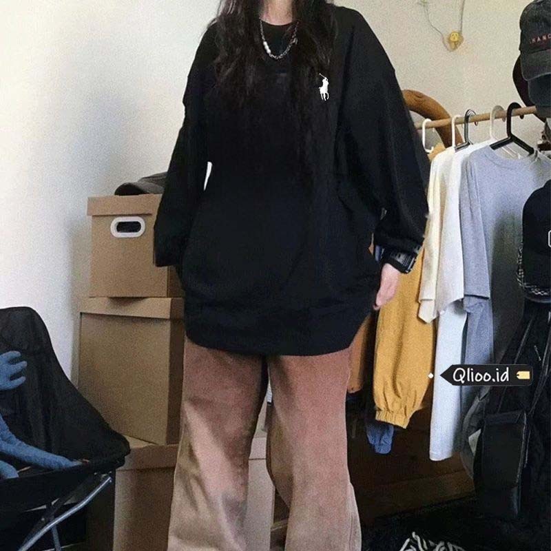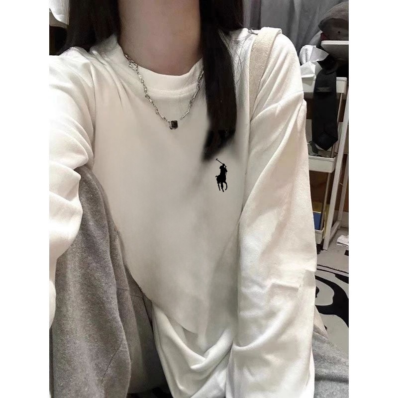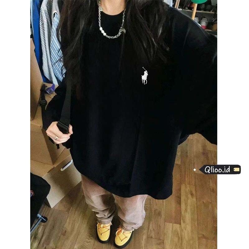 Qlioo Kaos Long Sleeve Wanita Oversize Pola Sederhana Ralph Lauren Baju Atasan Wanita Terbaru Lengan Panjang Korean Styl