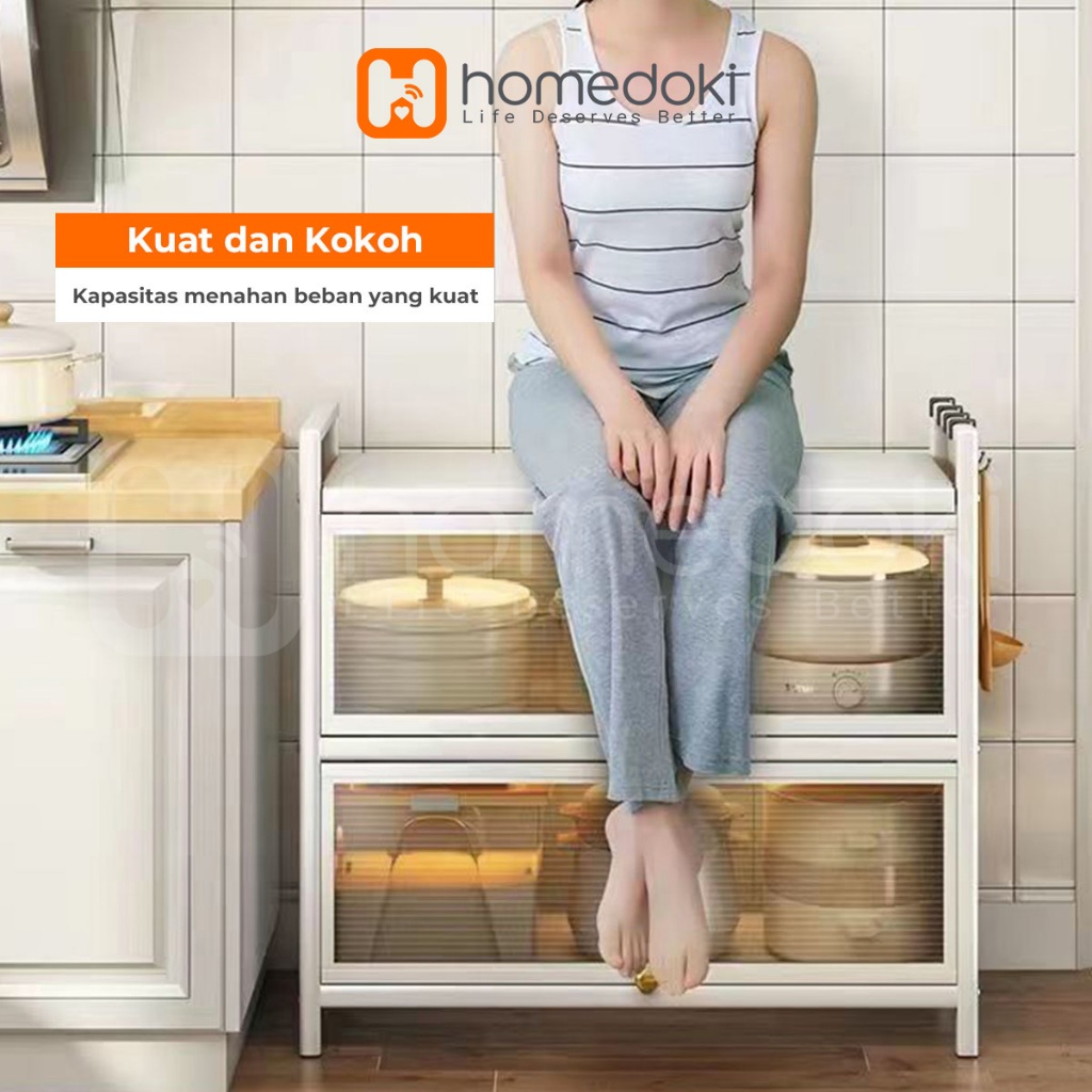 Lemari Piring Tertutup Minimalis Merek Homedoki Rak Dapur Multi Layer Beroda Pintu