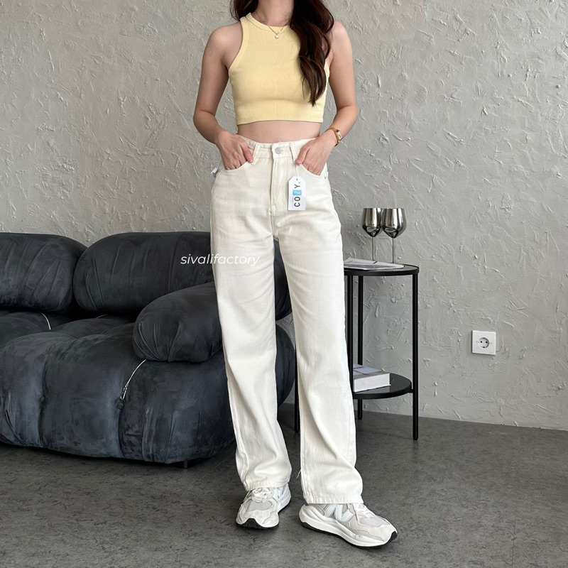 Sivali Dax Jeans - Celana Jeans Wanita Highwaist Straight Cut Import Panjang Korea Loose Premium Quality S-Xxl