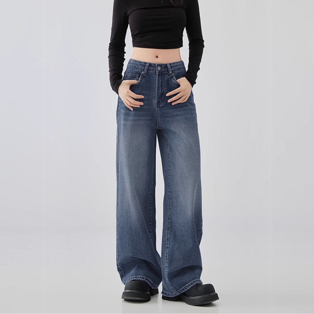 Straight Cut Jeans Terbaru 2025 High Waist Loose Plus Size Celana Jeans Wanita